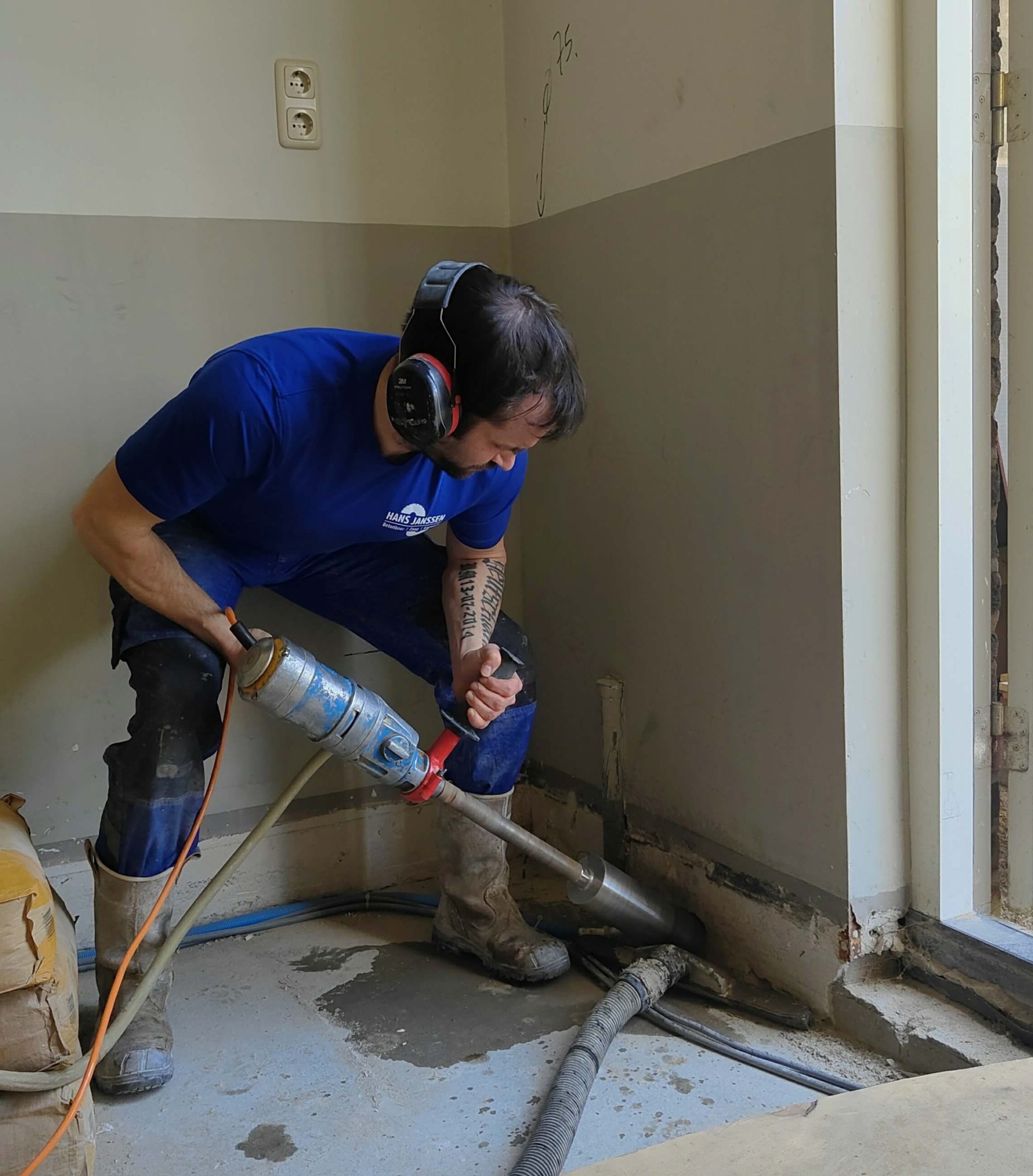 Ter preventie van water- en stofoverlast wordt, indien wenselijk, gebruik gemaakt van een waterzuiger, de zogenaamde slurry-slup, of stofarm geboord.